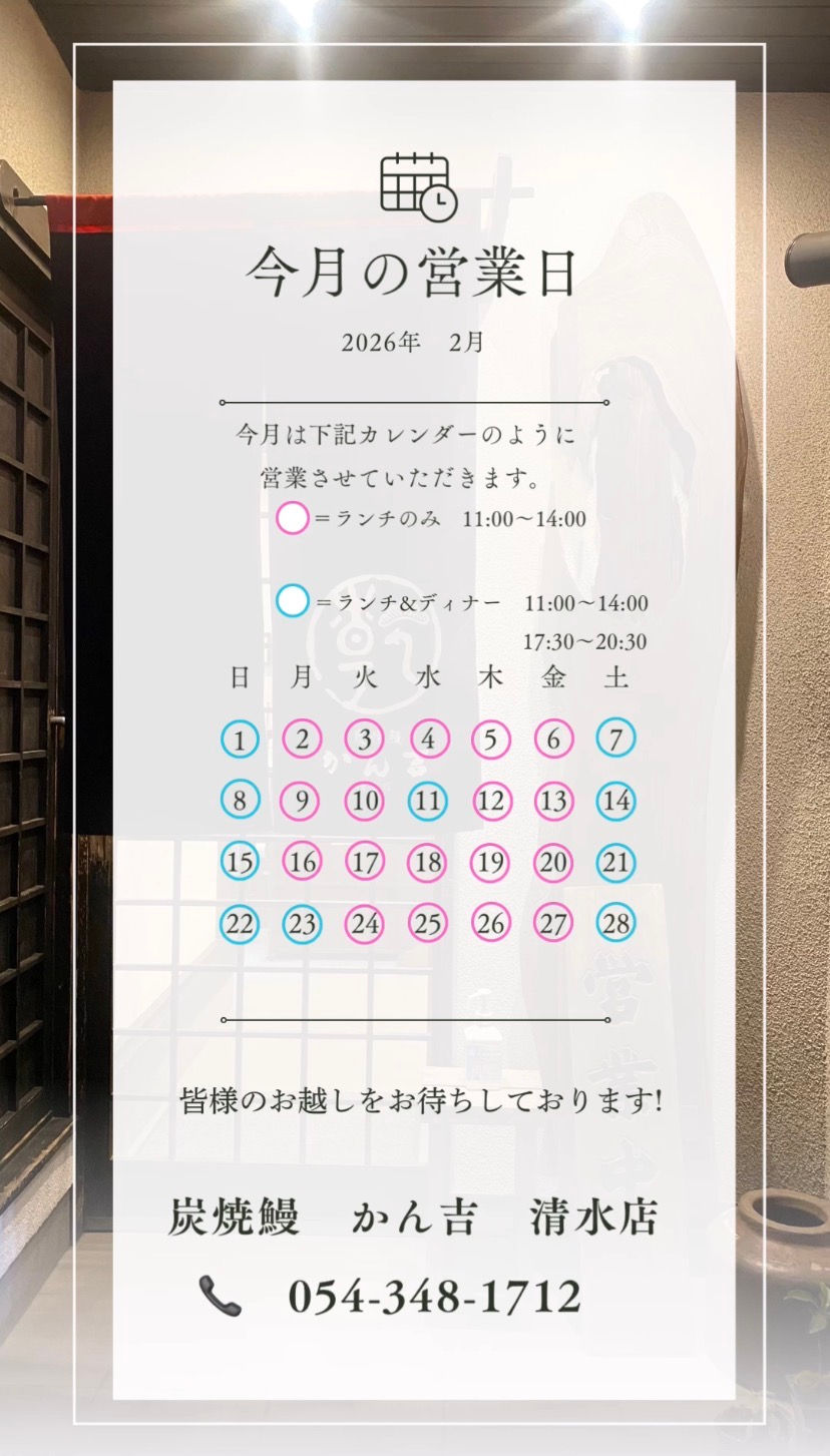 📢 2月・3月の営業日のご案内|かん吉 清水店